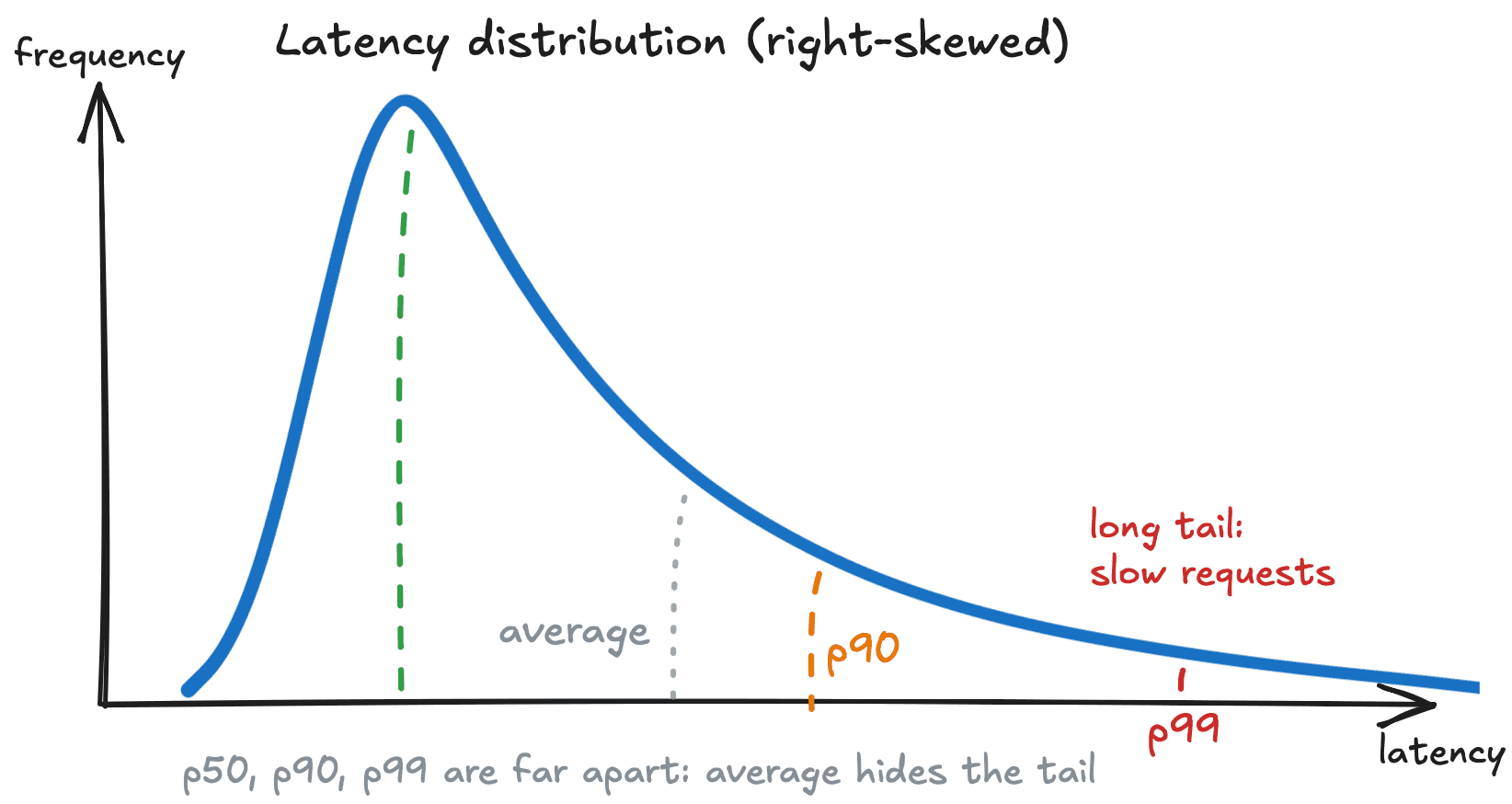 Instead of asking “what is the average latency?”, we ask “what is the worst experience for 1 in 100 of my customers?”.